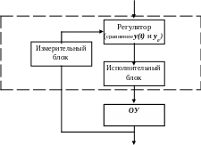 регулятор осуществляет сравнение y(t) с заданным значением выхода y0 и вырабатывает сигнал y = k[y(t)-y0], который с обратным знаком поступает в исполнительный блок;