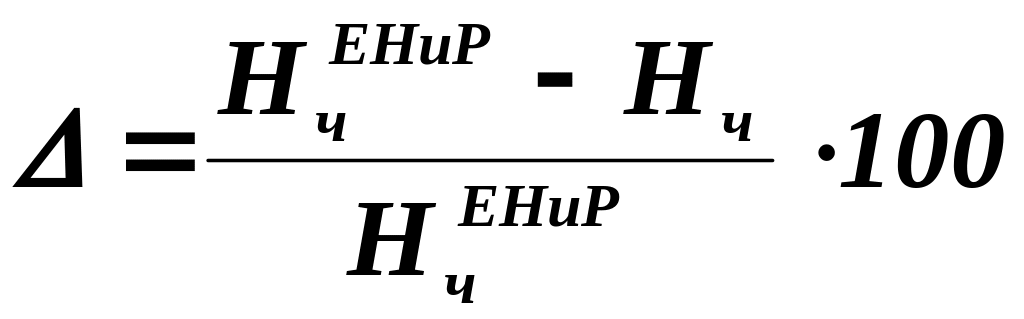 Указати на розбіжність між діючою та запроектованою нормами часу, що розраховується за формулою