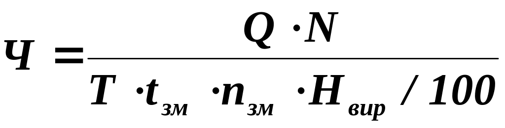 Нвир – норма виробітку, % (завдання до курсової роботи);