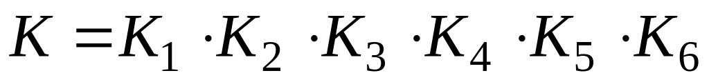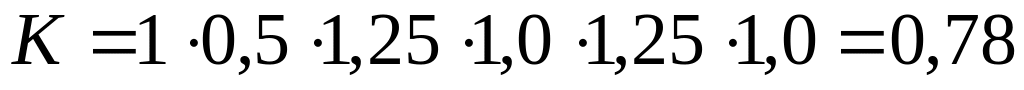К1= 1,0; К2= 0,5; К3= 1,25; К4= 1,0; К5= 1,25; К6 = 1,0; = 1,0: