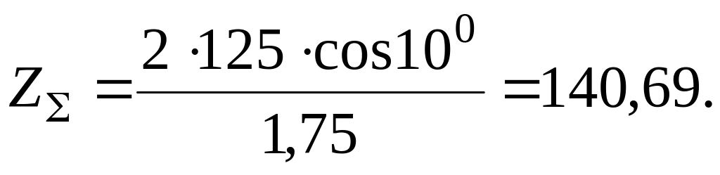 Обчислюємо сумарне число зубців передачі, попередньо визначивши кут нахилу лінії зуба з рекомендованих значень = 8...120.