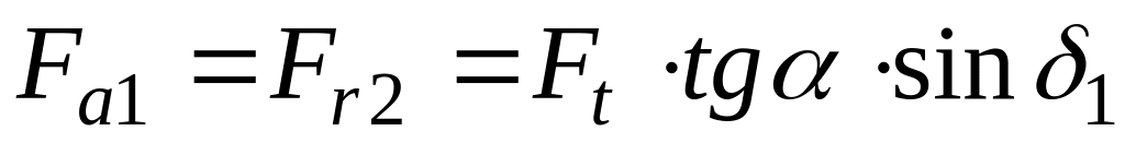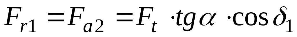 Радіальна сила на шестірні дорівнює осьовій силі на колесі: