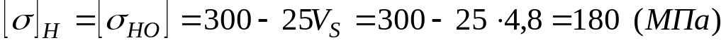 4.2.1.А. При розрахунку на контактну втому зубців черв'ячних коліс, виготовлених iз олов'янистих бронз, допустиме контактне напруження визначають за формулою:
