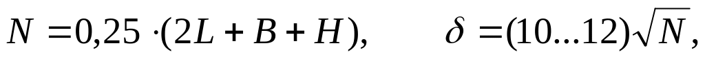 17.2. Мінімальну товщину зовнішніх стінок чавунних відливок δ визначають із технологічних можливостей та приведеного габариту N: