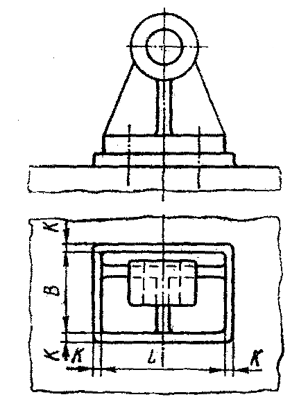 17.4. Розміри опорних платиків редуктора (lпр, bпр) та двигуна (lпд, bпд) приймають дещо більшими від опорних поверхонь, приєднувальних вузлів на величину К по всьому контуру з урахуванням неточності відливання (табл. 17.1).