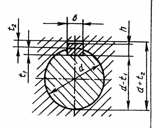 Згідно зі стандартом для d = 24 мм маємо: ширина призматичної шпонки b = 8 мм; висота h = 7 мм; довжина l = 70 мм; глибина пазів відповідно t1 = 4,0 мм; t2 = 3,3 мм.