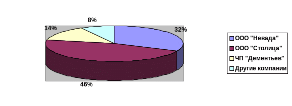 Иллюстрацию структуры, например, распределение рынка между основными конкурентами, следует представлять в виде круговой диаграммы.