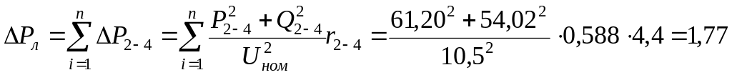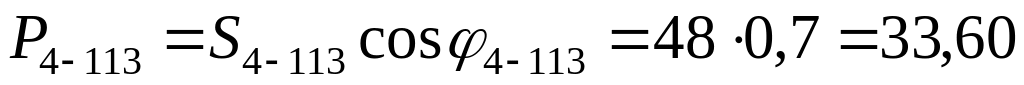 Р2-4=Р4-6+Р4-5+Р4-113=24,00+3,60+33,60=61,20 кВт – активный поток мощности через линию;