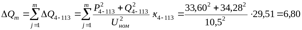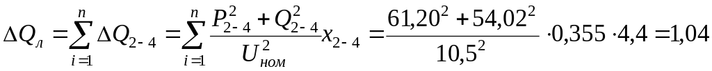 Q2-4=Q4-6+Q4-5+Q4-113=18,00+1,74+34,28=54,02 кВт – реактивный поток мощности через линию;