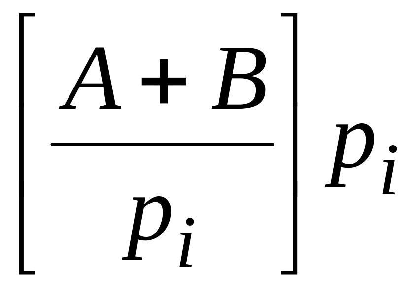 Пусть операнды A и B представлены соответственно остатками i и i по основаниям pi, i=1,2, ... ,n. Результаты операций A+B и A∙B представлены остатками i и i по тем же основаниям pi, то есть