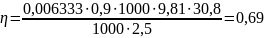 Ответ: КПД насосной установки равно 0,69