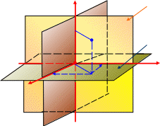Каждая пара координатных осей определяет координатную плоскость, а в совокупности они разбивают все пространство на 8 октантов.