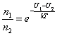 Из (2.5.3) можно получить, что отношение концентраций молекул в точках с U1 и i>U2 равно: