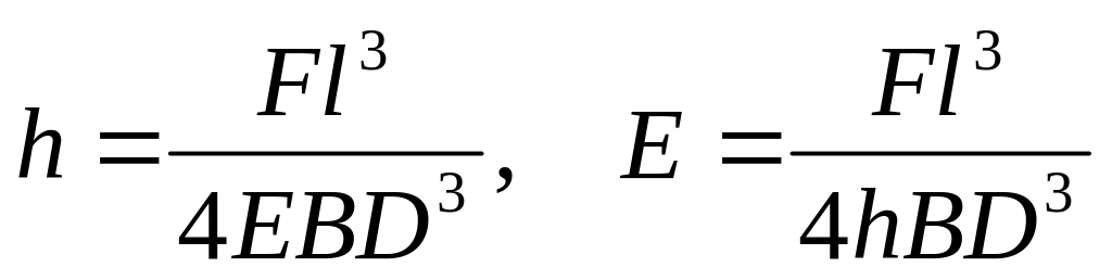 Як відмічалося вище, у результаті прогину стержня мають місце деформації простого розтягу і стиснення. Тому прогин стержня однозначно пов'язаний з модулем Юнга. Якщо до стержня прямокутного перерізу шириною В з товщиною D (рис. 2) прикладена сила F, то стрілка прогину h виразиться рівністю: