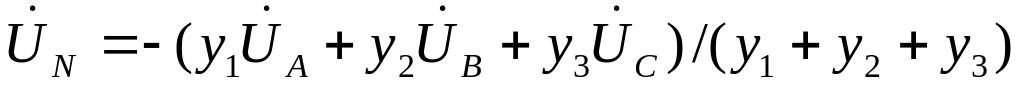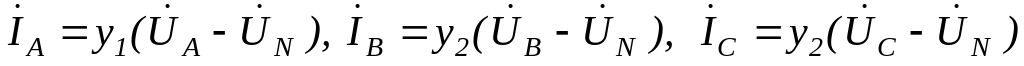 де y1, y2, y3 – провідності фаз А, В, С; UA, UB, UC – напруги фаз; UN – напруга нейтралі відносно землі; відповідно до (3.1).