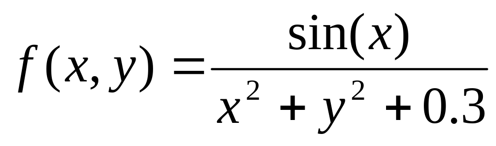 X = -3 : .1 : 3; [x,y] = meshgrid(X,X); z = 1./(3+x.^2+y.^2); surf(z) xlabel('x'); ylabel('y');
