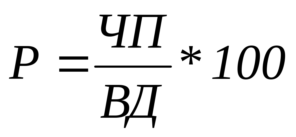 Рентабельность можно представить как отношение чистой прибыли к валовому доходу (ВД):