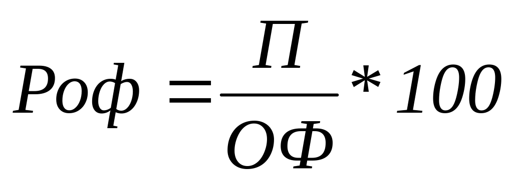 Отнесение прибыли к стоимости основных фондов, функционирующих на предприятии, позволяет оценить эффективность их использования (рентабельность основных фондов):