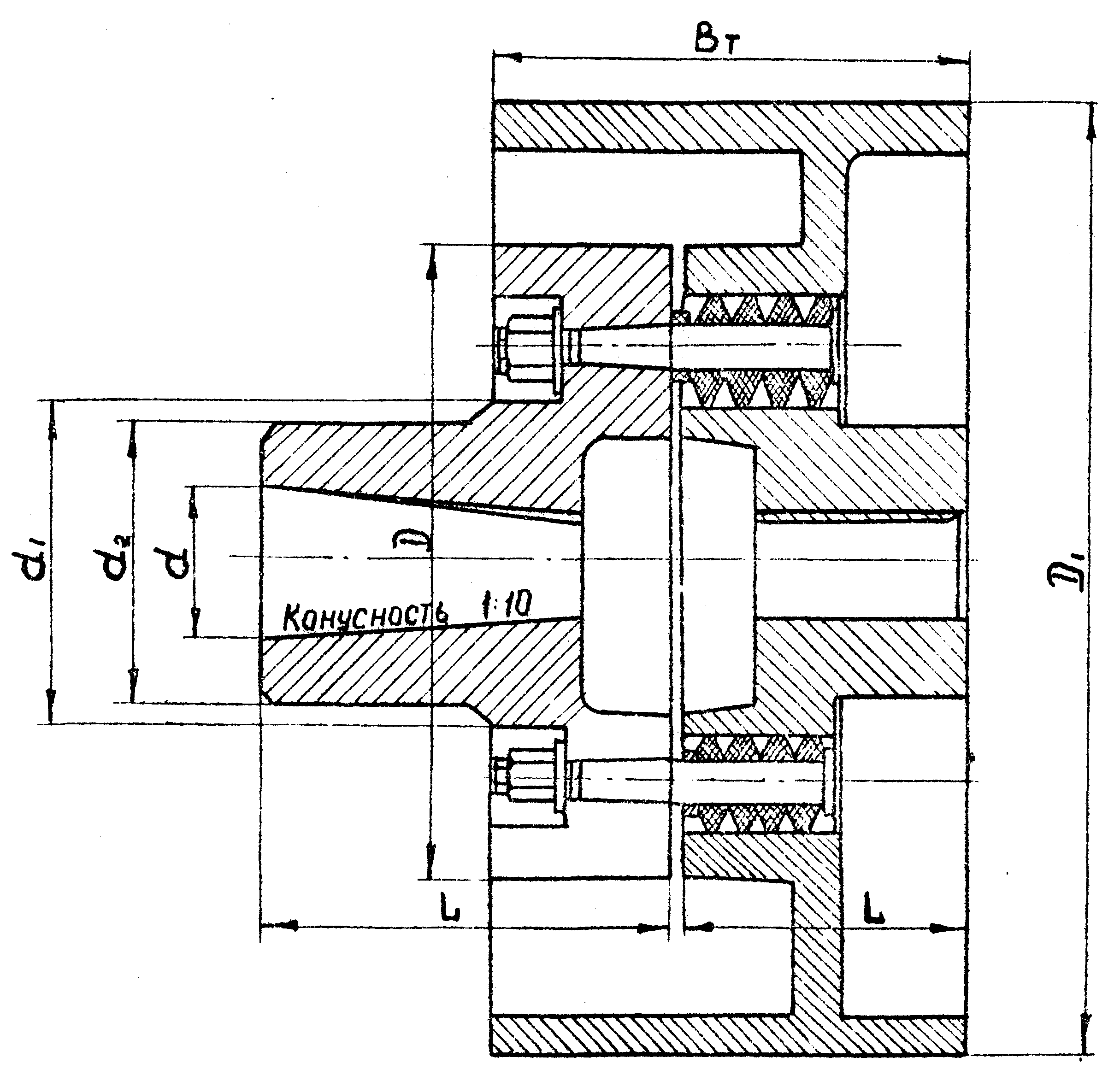 - эскиз принятой втулочно-пальцевой муфты с тормозным шкивом (или зубчатой муфты с тормозным шкивом) с указанием основных размеров (рисунок 4);