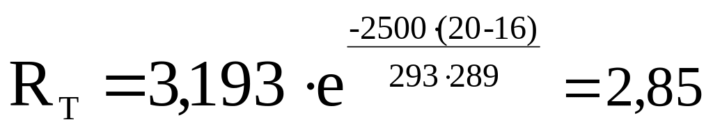 где В выбирается по справочнику радиолюбителя в зависимости от требуемого класса точности терморезистора. Чаще всего В=2500 К. Т΄=t΄+273 K=289 К; T˝=t˝+273 K=317 К.