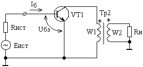 - •3.Однотактный трансформаторный усилитель мощности на биполярном транзисторе