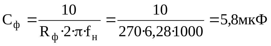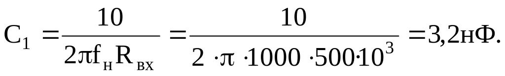 3. Входное сопротивление каскада принимаем равным величине сопротивления Rз:
