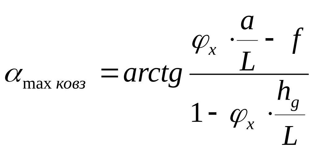 2. Розраховується найбільший кут підйому, який автомобіль може подолати, з умови перекидання за формулою (11.2).