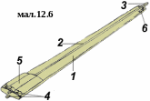 Коло нижньої основи кінці стрічки підгинаються, утворюючи дві петлі 4, призначені для надягання чохла на купол. У нижній частині чохла настрочено п'ять сот 5 для укладання строп і з’єднувальної ланки. На стрічці основи сот дано таврування сот арабськими цифрами (1 - 5).