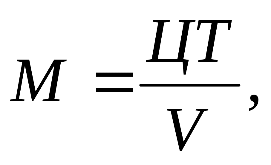 де М – кількість грошей, необхідних для товарного обороту в даному році; ЦТ – сума цін товарів, що знаходяться в обороті (які реалізуються) у даному році; V – середнє число оборотів грошової одиниці за рік.