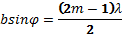 Т.к. φ≤90⁰, то для m=1 видно, что дифракционная картина из многих минимумов и максимумов при b<λ не появляется.