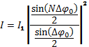 Рассмотрим бесконечно узкую щель шириной b, на которую нормально падает плоская волна. Для анализа дифракции разобьём световую волну, падающую на щель на число N параллельных лучей с малой разность фаз между соседними лучами и воспользуемся формулой для интенсивности полученной при рассмотрении многолучевой интерференции