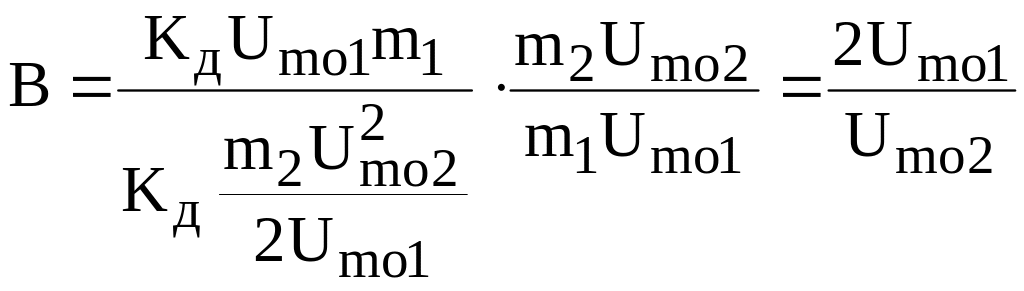 Выигрыш, полученный в отношении напряжений с частотами модуляции сигналов при детектировании, можно рассчитать по формуле