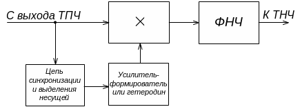 Работа синхронного детектора на основе перемножителя сигналов аналогична работе ПЧ.
