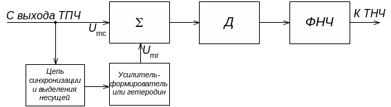 Принцип действия синхронных детекторов (СД) основан на периодическом изменении параметра цепи (например, крутизны преобразовательного элемента) под действием напряжения гетеродина. К таким устройствам, как известно, относятся преобразователи частоты, однако в отличие от ПЧ в СД частоту гетеродина выбирают равной частоте несущего колебания, т.е. fг=f.