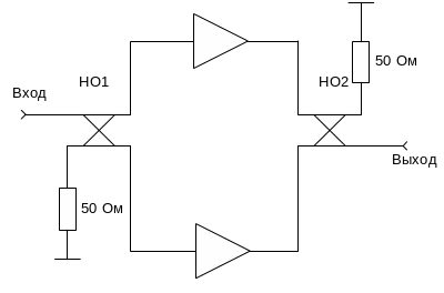 Чаще всего в технике связи на СВЧ применяются широкополосные балансные усилители (рис.5.62), обладающие рядом полезных свойств: