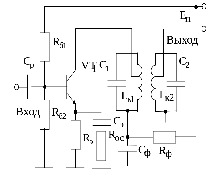Вариант УРС с емкостной связью контуров представлен на рис.5.28.