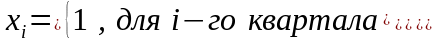 Другой метод моделирования временного ряда, содержащего сезонные изменения, состоит в построении модели регрессии с включением фактора времени и фиктивных переменных. Количество фиктивных переменных должно быть на единицу меньше числа периодов внутри одного цикла колебаний. Например, при моделировании поквартальных данных модель должна включать 4 независимые переменные – фактор времени и 3 фиктивные переменные. Она равна единице для данного периода и нулю для всех остальных периодов, т.е.