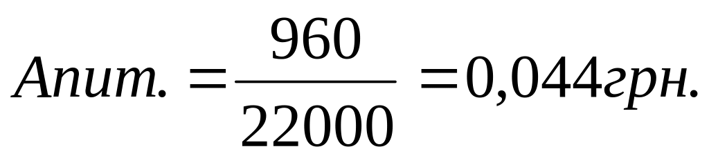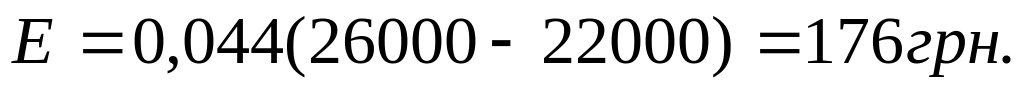 Приклад 12. Розрахувати економію підприємства на амортизаційних відрахуваннях на підставі даних: вартість основних виробничих фондів – 8 тис.грн.; норма амортизації – 12 %; річний обсяг виробництва продукції: за планом – 22 тис.грн., фактично – 26 тис.грн.