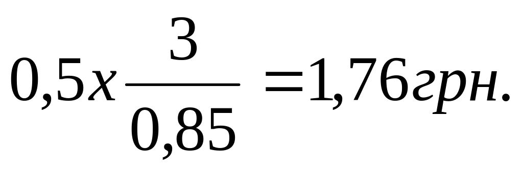 фактично витрати матеріалу склали 0,5 кг, ціна за 1 кг зросла в порівнянні з планом до 3 грн., а коефіцієнт використання матеріалу склав – 0,85.