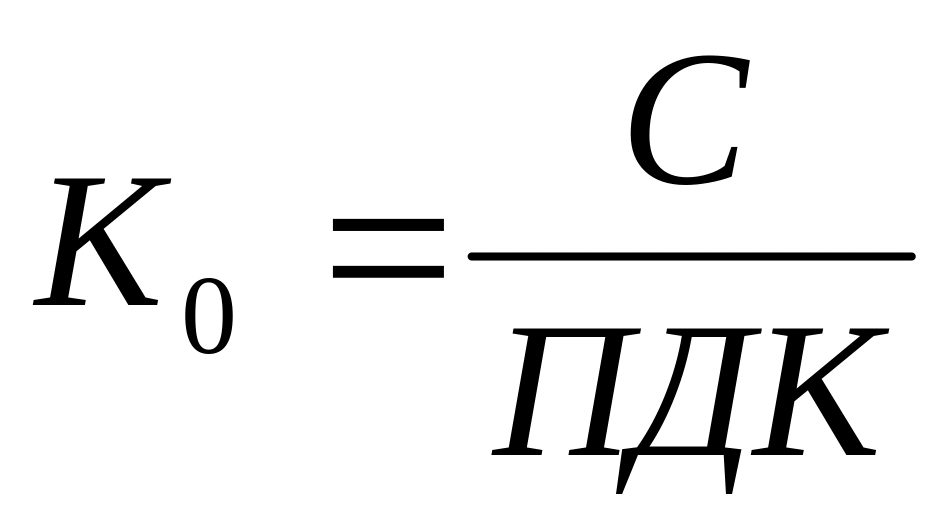 1. Опасность загрязнения тем выше, чем в большей степени фактическое содержание вредных веществ в почве С [мг/кг] превышает ПДК [мг/кг], т.е. чем больше значение коэффициента опасности К0 превышает единицу; коэффициент опасности определяется следующим образом: