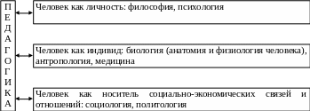 Антропология как комплексная наука о человеке дает для педагогики обширный материал о многомерности и многоликости человека. Педагогика разрабатывает способы комплексного подхода в воспитании и обучении человека.