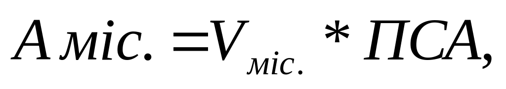 При виробничому методі амортизація визначається не річна (як в попередніх чотирьох методах), а місячна, яка дорівнює множенню фактичного місячного обсягу продукції (робіт, послуг) (Vміс.) і виробничої ставки амортизації (ПСА):