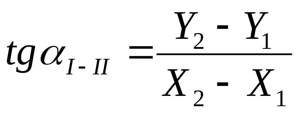 Так же из решения обратных геодезических задач по координатам пунктов полигонометрии I и II и проектным координатам точек А и В вычисляем дирекционные углы направлений αI-A и αII-B: