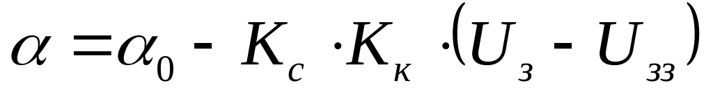 Таким чином при роботі АД у замкненій системі в міру збільшення його навантаження кут керування повинен зменшуватись від деякого максимального до мінімального. Тому система керування тиристорами повинна виробляти при відсутності сигналу керування імпульси з кутом керування