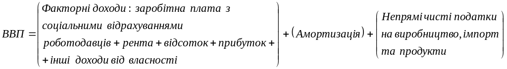 Розподільчий спосіб обчислення ВВП виходить із того, що його величину визначає сума первинних доходів макроекономічних суб’єктів. Це – спосіб «по доходах»: