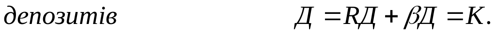 Звідси обяг депозитів розраховується як величина грошової бази, збільшена на ефект мультиплікації:
