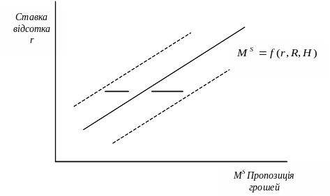 Отже, обсяг пропозиції грошей можна розрахувати за функцією:
