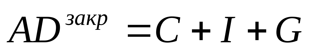 У закритій економіці сукупний попит визначається, як загальна вартість товарів та послуг, на які виявляють попит вітчизняні резиденти за певного рівня цін. Цей показник дорівнює сумі споживчого попиту домогосподарств (С), інвестиційного попиту підприємницького сектору (І) та попиту держави (G). Взаємозв’язок складових сукупного попиту закритої економіки описується тотожністю (АD закр):