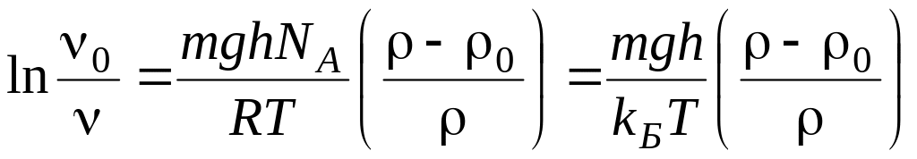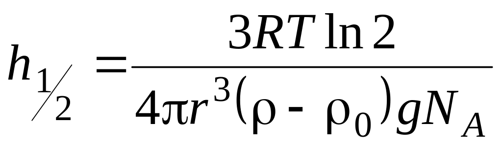 де h – концентрація часток на висоті h (м) від дна посудини, в якій перебуває система, або від поверхні Землі; 0 – частинна концентрація золю на рівні дна посудини або поверхні Землі; та 0 – густини відповідно дисперсної фази та дисперсійного середовища, кг/м3; m – маса частки, кг; g – прискорення сили тяжіння, м/с2; kБ – константа Больцмана.