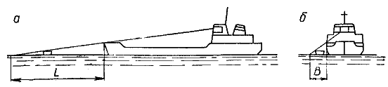 Полный радиус этой зоны, например, для волжских трехпалубных пассажирских теплоходов типа «Гастелло» и «Иван Сусанин» примерно равен 94 м, для дизель-электроходов типа «Россия»—83 м, для пароходов типа «Володарский»— 137 м, для грузовых теплоходов типа «Б. Волга» — 97,5 м. Ширина непросматриваемой зоны для пассажирского двухпалубного парохода превышает 25 м по каждому борту. Поэтому управление большими судами при движении по перекатам, шлюзам, каналам, узким участкам рек, под мостами и в других подобных условиях затруднено, а с командного пункта пассажирских и грузовых судов часто нельзя заметить приближения к судну мелких моторных и гребных судов.